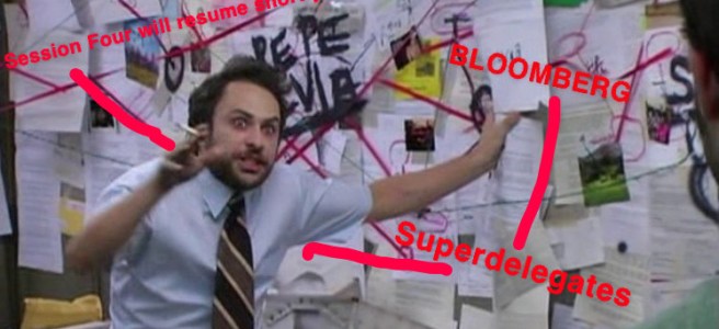 After the first tally of delegates from the 57 delegations there was no majority victor. Bernie was ahead of Bloomberg by about 500 delegates, and after a rule’s check on what events would ensue to declare a winner, a ten-minute deadline was announced to hear the results. Naturally, whispering began throughout the convention hall, and doubts circulated as to whether or not the superdelegates would attempt to sway the results towards a more W.I.S. favored candidate *cough* *cough* Bloomberg. Talk of Bloomberg already being behind stage, waiting to claim victory could be heard from the New York delegation.